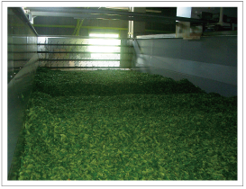 茶葉の水分を飛ばし、しおれさせる工程です。24時間から48時間陰干しします。