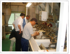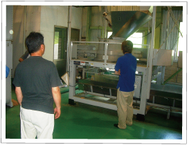 細胞組織を砕いて酸化発酵を促す、揉捻機にかけて揉みます。